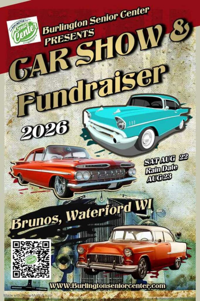 Come to our 1st annual Classic Car show and Fund Raiser hosted by Brunos Restaurant for the Burlington Senior Center. Activities include; car show with prizes, food, raffles, auctions, bowling, vendors, and live music. Saturday Aug 22, 2026 with a rain date of Sunday August 23. Keep checking back as more information to come….