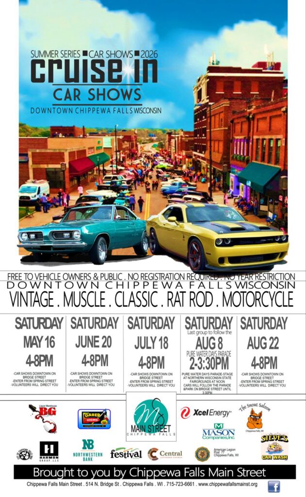 August 8th – PARADE-STAGE AT NORTHERN WISCONSIN STATE FAIRGROUNDS AT NOON CARS WILL FOLLOW THE PARADE & PARK ON BRIDGE STREET UNTIL 3:30PM