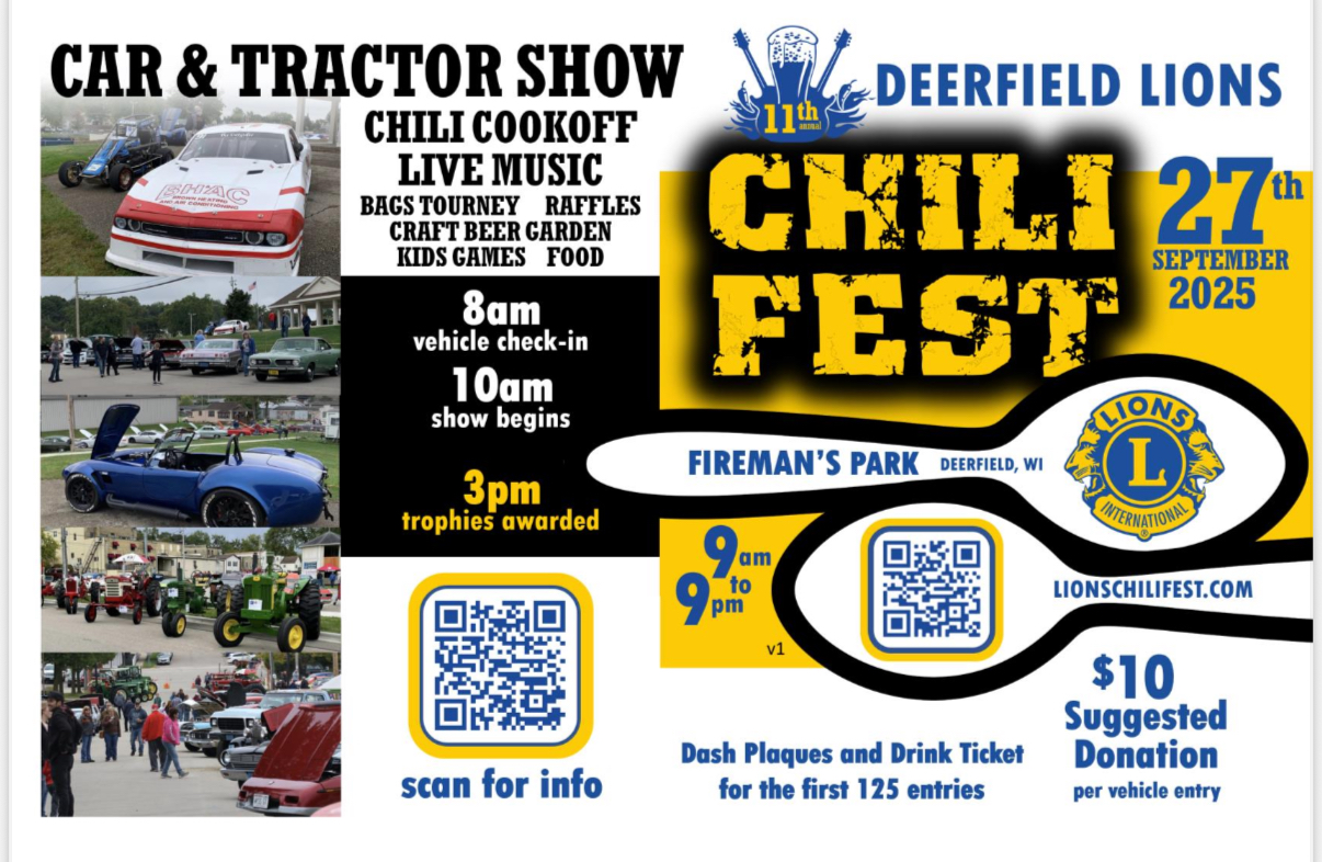 Lion’s Chili Fest Car Show – Deerfield – 9/27/2025