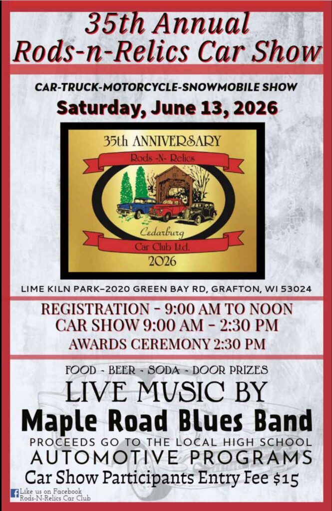 Rods-N-Relics Car Show – Grafton – 6/13/2026