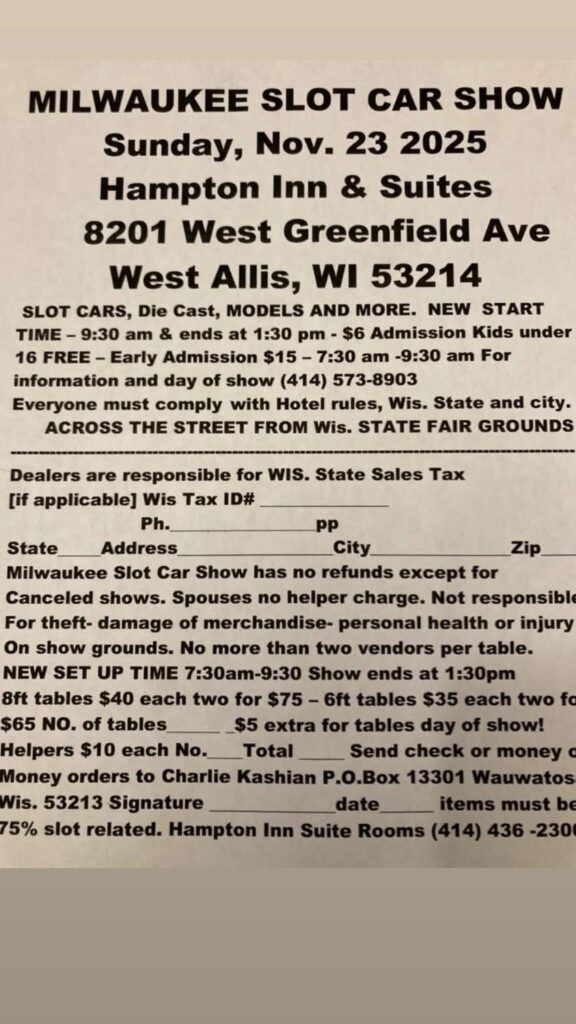 The Scale Auto Hobby & Toy Show – It’s one of the largest One Day Shows of its type in the Midwest. It offers over a hundred and fifty tables for you to browse through to find that special item. It features primarily auto related merchandise such as Die Cast Cars, Model Kits, and Racing Memorabilia. If you can’t find it here it probably hasn’t been made! A Milwaukee tradition for over twenty years, this is the place that model builders, race fans, toy collectors, and hobbyists meet and network. There is always something for everyone!