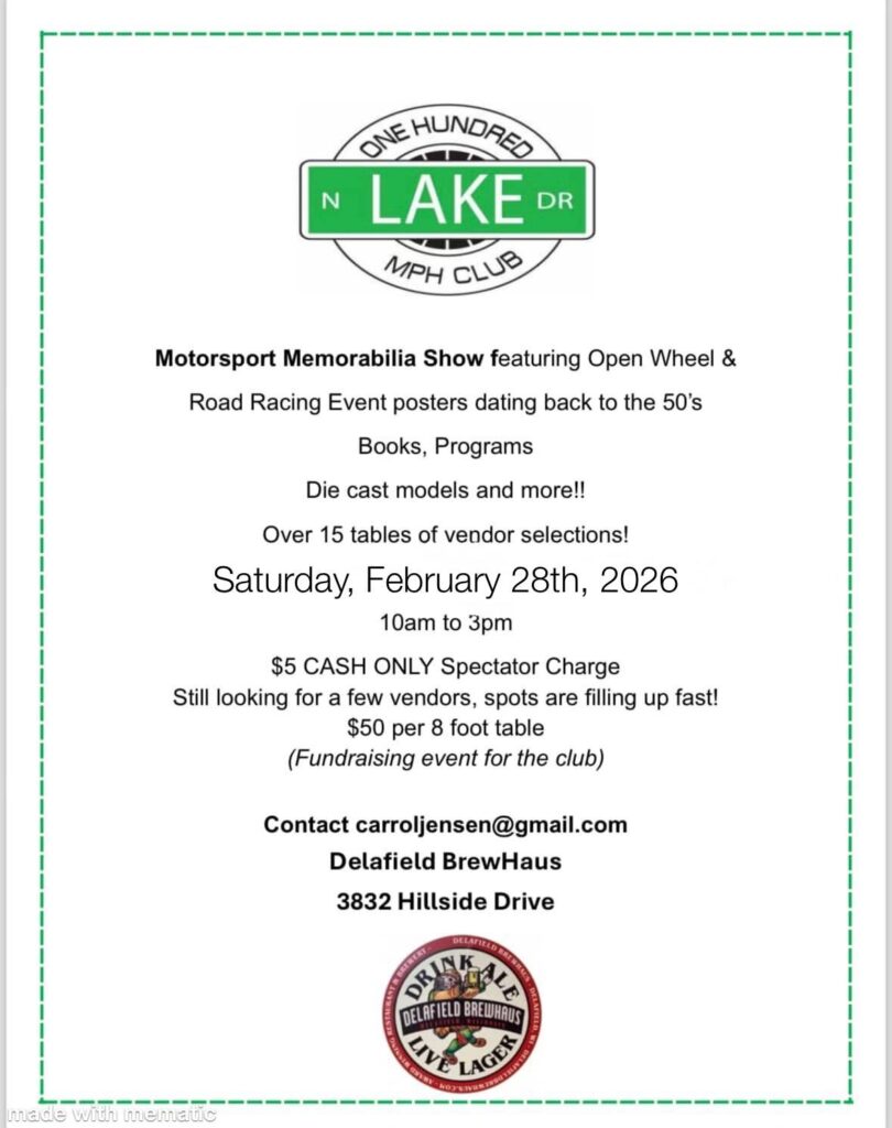 100MPH Club Memorabilia Show – Delafield – 2/28/26