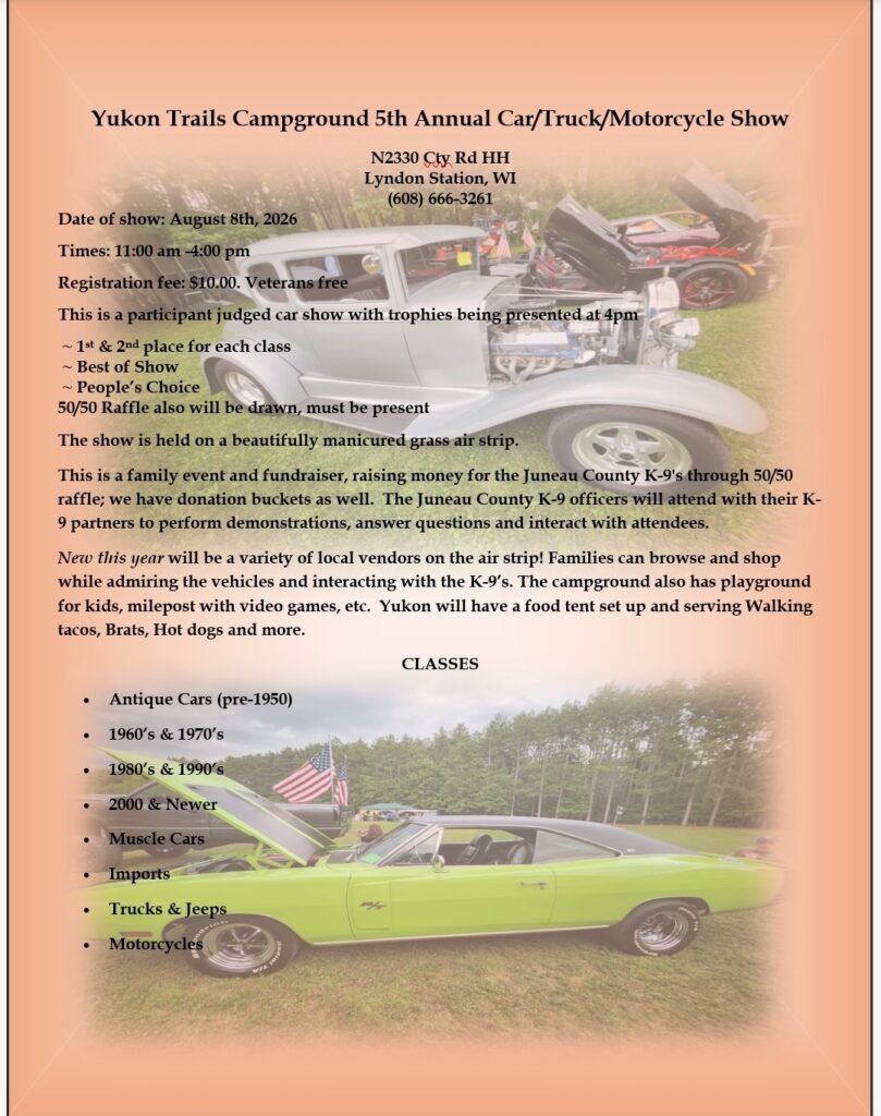 Yukon Trails Car Show – Lyndon Station – 8/8/2026