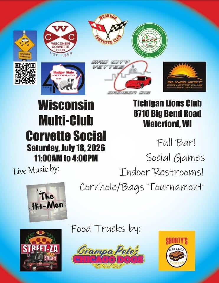 Jul 18 Corvette Social – Waterford – 7/18/2026 11:00 am - 4:00 pm Tichigan Lions Club 6710 Big Bend Road, Waterford Event Details Get Directions