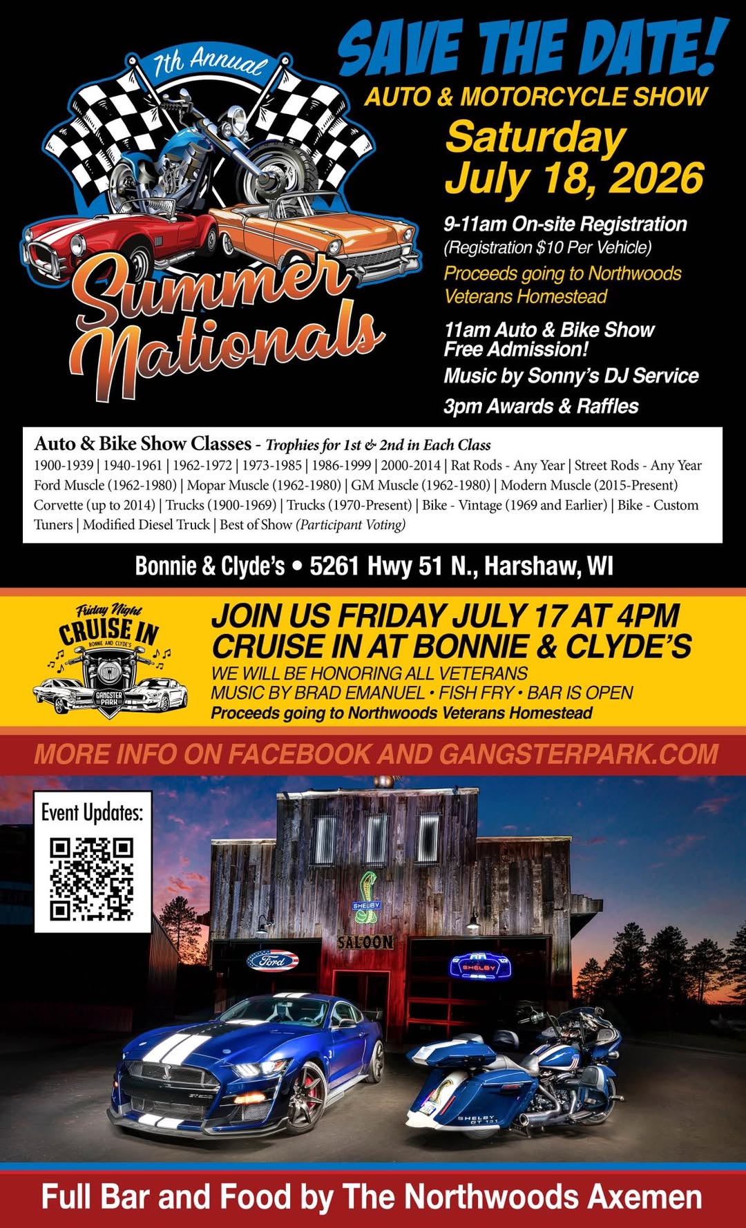 -Live bands (new music every week) -Custom bikes + moto culture -Food + drinks