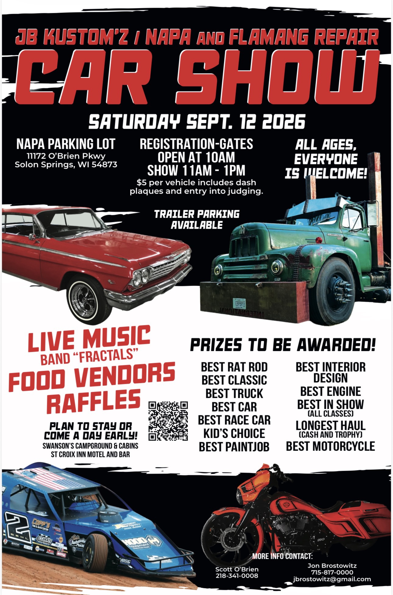 Sep 12 Car Show – Solon Springs – 9/12/2026 10:00 am - 1:00 pm Napa - Solon Springs 11172 S O'Brien Pkwy, Solon Springs Event Details Get Directions