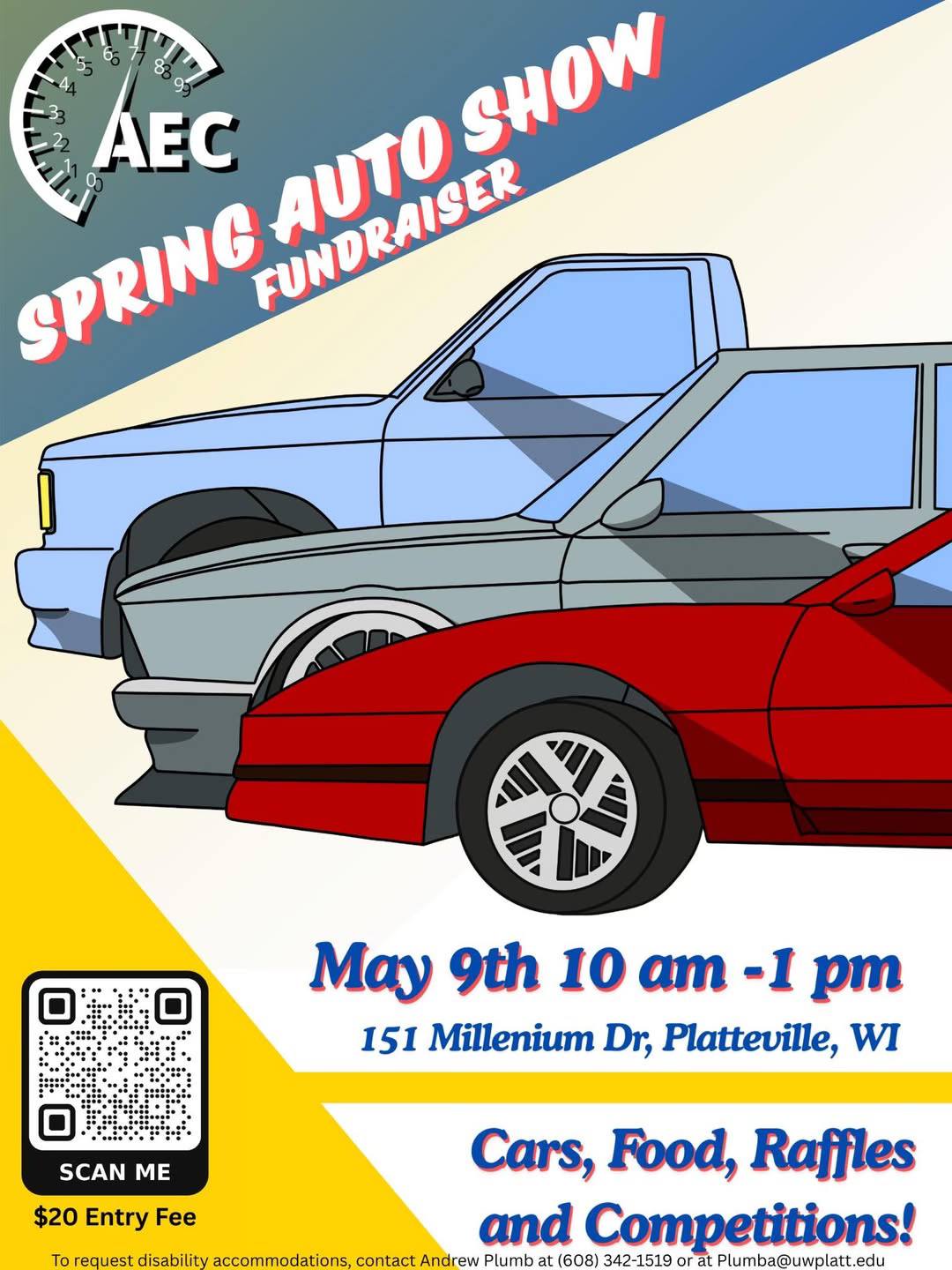 May 9 Spring Auto Show Fundraiser – Platteville – 5/9/2026 10:00 am - 1:00 pm Millenium Cinema 151 Millenium Drive, Platteville Event Details Get Directions