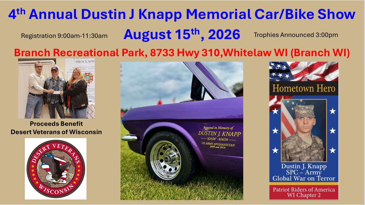 Dustin J Knapp Memorial Car/Bike Show – Whitelaw – 8/15/26