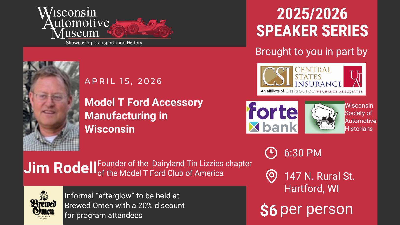 presented by Jim Rodell, lifelong Model T enthusiast, past director of the Model T Ford Club of America, and founder of its Dairyland Tin Lizzies chapter.